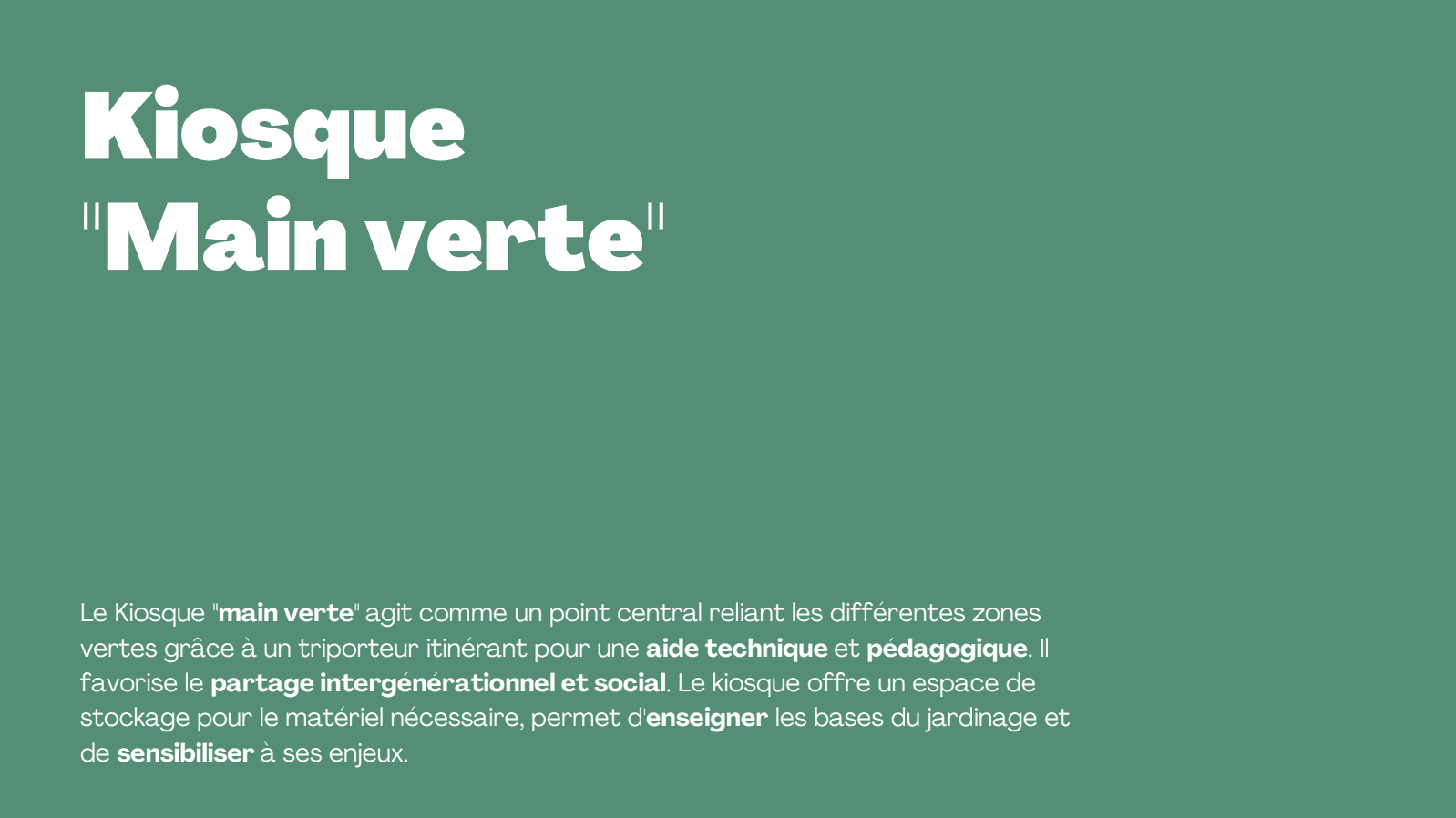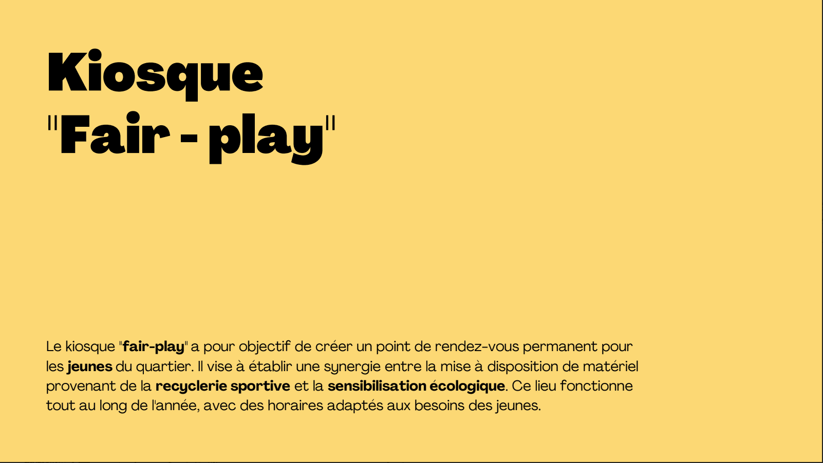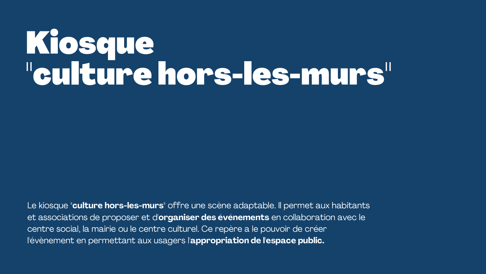 urbanisme transitoire ou dans les kiosques, il y a de la culture, du jardin participatif, du coup de pouce administratif et du sportif, gérés par la mairie. Continuité de service alors que le service situé est détruit car il y a un gros chantier du centre social.