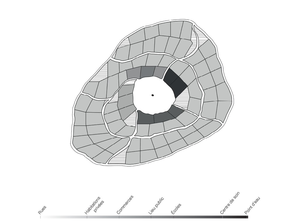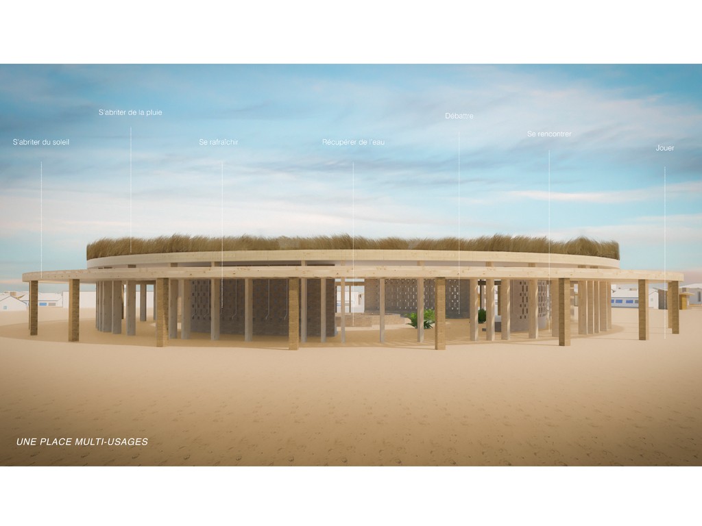 Le projet propose alors la création d’une place multi-usages, cœur spatial et social du camp. Un lieu capable d’accueillir des fonctions essentielles - point d’eau, abri, rafraîchissement - mais aussi des usages collectifs : se rencontrer, débattre, jouer, se reposer. Cette place devient un outil de recomposition du lien social et un premier pas vers une forme d’urbanité.