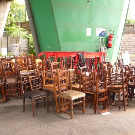 Le premier manifeste du réemploi à échelle d'architecture, face à l'Hôtel de Ville de Paris. Un exemple de possibilité d'institutionnalisation d'une forme d'œconomie.