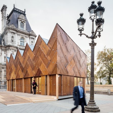 Installé sur la place de l’Hôtel de Ville de Paris à l’occasion de la COP21, le Pavillon Circulaire, conçu par Encore Heureux Architectes, s’impose comme le premier manifeste construit du réemploi à cette échelle symbolique. Petite construction singulière, le pavillon n’a pourtant rien de circulaire dans sa forme. Son nom renvoie moins à une géométrie qu’à un processus de fabrication, directement issu des principes de l’économie circulaire : les déchets des uns deviennent les ressources des autres.