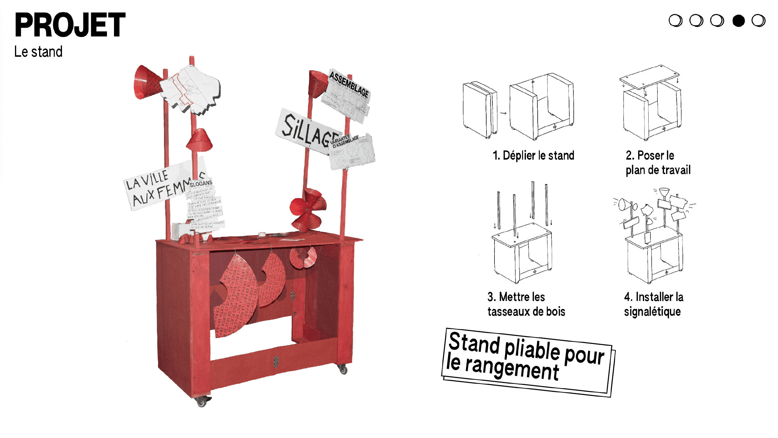 Un stand mobile accompagne la marche, fournissant matériel, notices et variantes d’assemblage. Ce dispositif facilite l’action collective et rend le projet reproductible, accessible et appropriable par d’autres groupes.